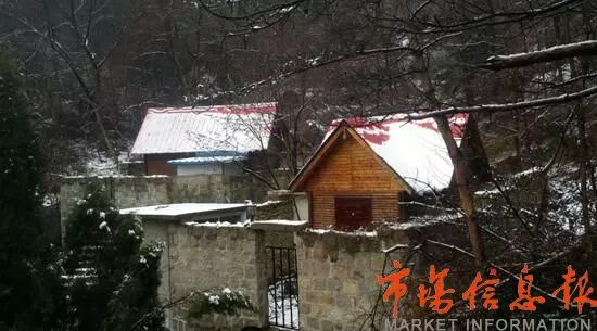 趕往金泰山木屋別墅途中,記者留意觀察了葦溝水庫前后左右的別墅。除了西北山坡上的別墅仍在施工外,其他都有入住跡象。趕到金泰山景點山門前,記者向值班工作人員打聽山上木屋別墅的有關(guān)情況。該工作人員告知:“木屋別墅是景區(qū)08年建的。很早就承包出去了,以前游客可以住?,F(xiàn)正在修繕,停止營業(yè)了?!卑凑账甘镜姆轿唬浾唔樌业奖滔检?。按照寺廟墻體上箭頭提示,記者轉(zhuǎn)到寺廟后邊,拾級而上,進入木屋別墅區(qū)。雖然形制規(guī)模比普通別墅小很多,但這些房子結(jié)構(gòu)簡單、造型別致,從頭至尾找不出正在維修、停止營業(yè)的蛛絲馬跡。走下金泰山,見有環(huán)衛(wèi)工人在掃雪,記者上前打聽得知,在房干景區(qū)管理尺度的確非常寬松,只要舍得花錢,買塊土地建房不需要什么手續(xù)。不過,這些地只能租用,無法買斷租期,一般是50年。