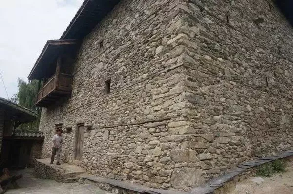 這座碉樓,是歷史上爾蘇民居的典型造型。它的特別之處,在于其墻體以天然片石壘砌,厚度超過1米,在上面的粘土上,還有不少壘墻者的手印。除了朝院內(nèi)的一面墻外,其余三面均無窗戶。仔細(xì)看,可見一個(gè)個(gè)高一尺、寬半尺的成梯形的槍眼鑲嵌在墻上。朝院內(nèi)的那一面墻上,房門竟然開在二樓,進(jìn)出碉樓還需搭木梯。
