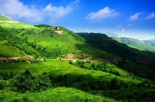 飛狐峪空中草原,不是因?yàn)閼以诳罩?,而是因?yàn)榈搅松巾敚?a href='/jingdian/95661' target=_blank>大山一邊是懸崖峭壁,一邊是一馬平川,綠草如茵,繁花似錦的大草原。連綿的高山草甸,如一塊綠毯鋪展開來。山頂有很多風(fēng)力發(fā)電的裝置,緩慢的旋轉(zhuǎn)速度,讓人覺得它好像停止了,但定睛一看,它還在轉(zhuǎn)著,時(shí)間也由此緩慢下來,而那幾個(gè)沿著山梁散布在草地上的風(fēng)車很像日本動(dòng)漫里的場景,干干凈凈的幾塊顏色,不由得小清新起來。