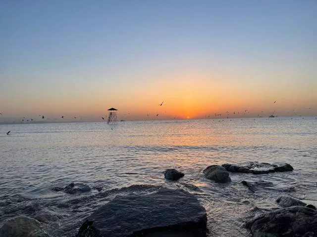 黎明時分,空氣中夾雜著一絲涼爽,清晨的“海邊精靈”在肆意翱翔鳴叫,波光粼粼的海面還有出海的漁船