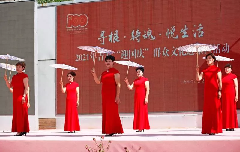 儀式結(jié)束后,由吉縣文化和旅游局主辦的“尋根鑄魂悅生活”2021年吉縣“迎國慶”群眾文化活動精彩上演,歌曲、旗袍秀、舞蹈、太極拳、太極劍、舞龍、戲曲、嗩吶等文藝節(jié)目紛紛登臺亮相,為大家送上了一道精彩絕倫的視覺盛宴和文化大餐。