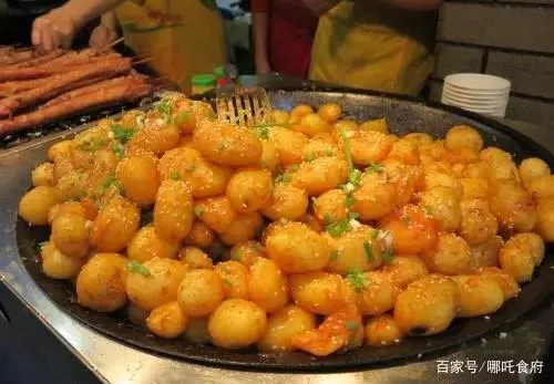外焦里嫩的小土豆就像一個(gè)一個(gè)的小乒乓球,遠(yuǎn)看根本不會(huì)把它和土豆聯(lián)系在一起,金黃色的土豆球撒點(diǎn)蔥花點(diǎn)綴,再加上老板的秘制調(diào)料,既好看又好吃。