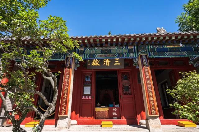 太清宮的布局非常精妙。三官殿內(nèi)供奉的是天官、地官、水官,實際上是中國古代最有影響的三位部落領(lǐng)袖堯、舜、禹。相傳堯時敬天愛民,上有天相,以風調(diào)雨順而被后人尊為天官;舜時民風高尚,地不生災,故被尊為地官,后人常說的“堯天舜日”。可說是一種追憶;大禹繼承父志,因勢利導,治理了空前的洪水災害,故被尊為水官。從這里可以看到道家在漢代以前供奉的神是對中華民族的發(fā)展有過貢獻的歷史人物。
