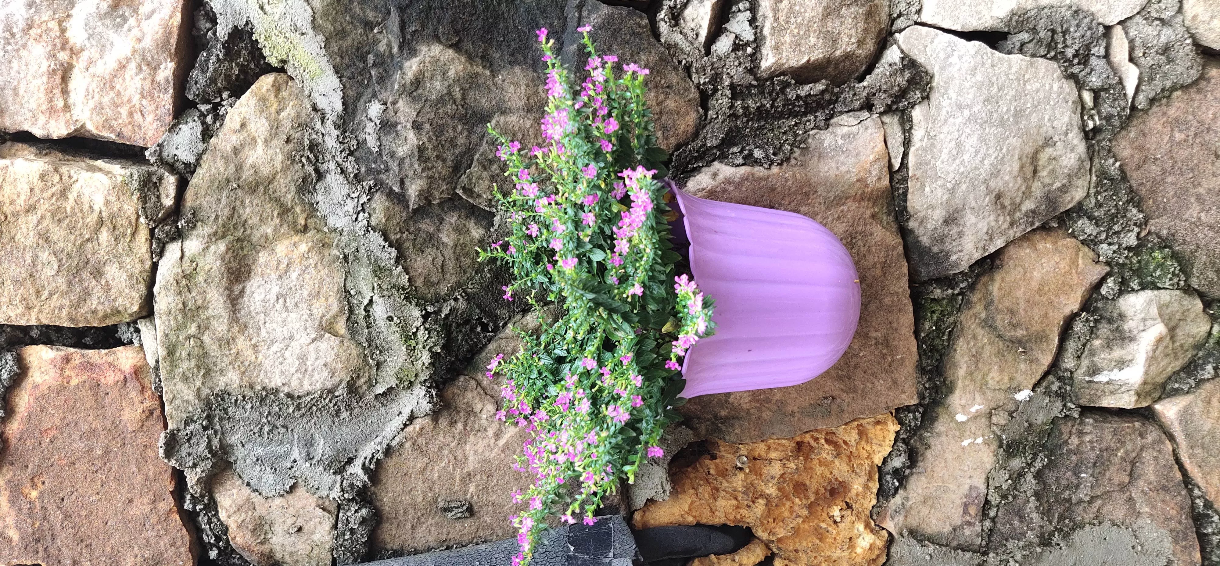 令人驚喜和新奇的是,村落的墻壁上,掛著五色的小小花盆,小小花盆里栽著各色小花,楚楚動(dòng)人,玲瓏可愛(ài)。