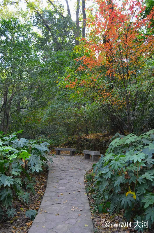 除了沿著剛才可以通行機(jī)動(dòng)車的馬路爬山,也可以走這樣的僻靜小道,大多時(shí)候都很安靜,到處都是落葉,鳥鳴。