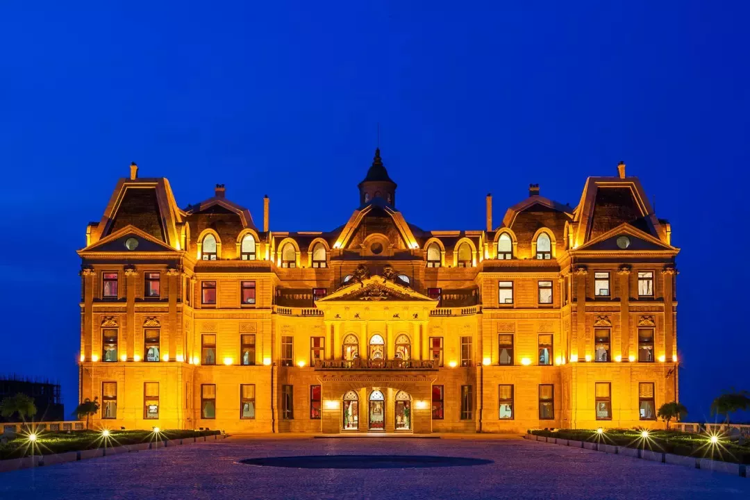 城堡以巴洛克風(fēng)格為主,占地5000多平方米,共四層,以珍貴洞石為主的建筑材料承載著歐洲建筑和裝飾藝術(shù)的精髓,獨(dú)一無(wú)二的貴族氣息撲面而來(lái)。周圍還有護(hù)城河環(huán)繞,內(nèi)裝海水,可養(yǎng)海參鮑魚,也可供人戲水劃船,情趣十足。