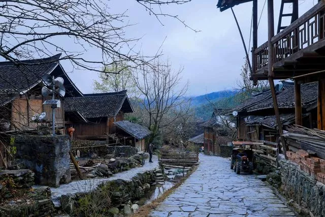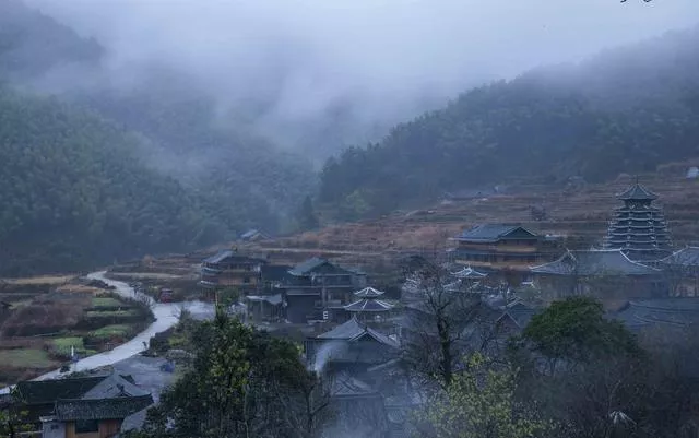 侗寨的早上煙雨朦朧,寧靜安詳,遠(yuǎn)山云霧繚繞,近處的木屋、寨塔若隱若現(xiàn),幾家房屋的大坡頂上升起裊裊炊煙,潺潺的流水、輪番的雞叫催起了不愿醒來的游客,如此良辰美景,錯(cuò)過便是遺憾。