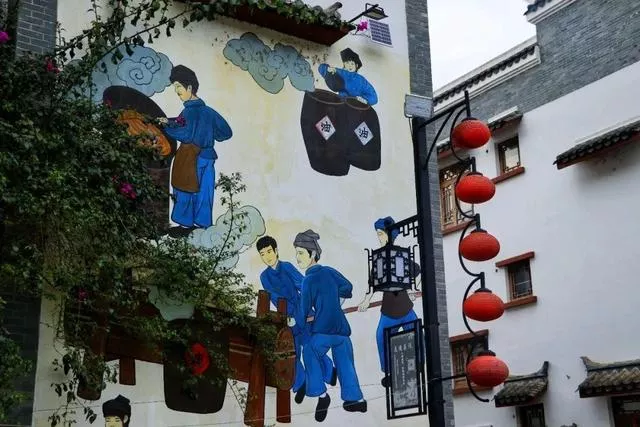 少數(shù)民族文化壁畫:荔波古鎮(zhèn)內(nèi)許多建筑的墻上的都刻畫著荔波當(dāng)?shù)厣贁?shù)名族的文化故事。例如“布依十三坊”,“布依十三坊”是布依人塵封已久的文化記憶,包括刺繡坊、豆腐坊、剪紙坊、木雕坊、釀酒坊、書畫坊、水磨坊、油榨坊、織布坊、制茶坊、制陶坊、制衣坊、竹編坊。