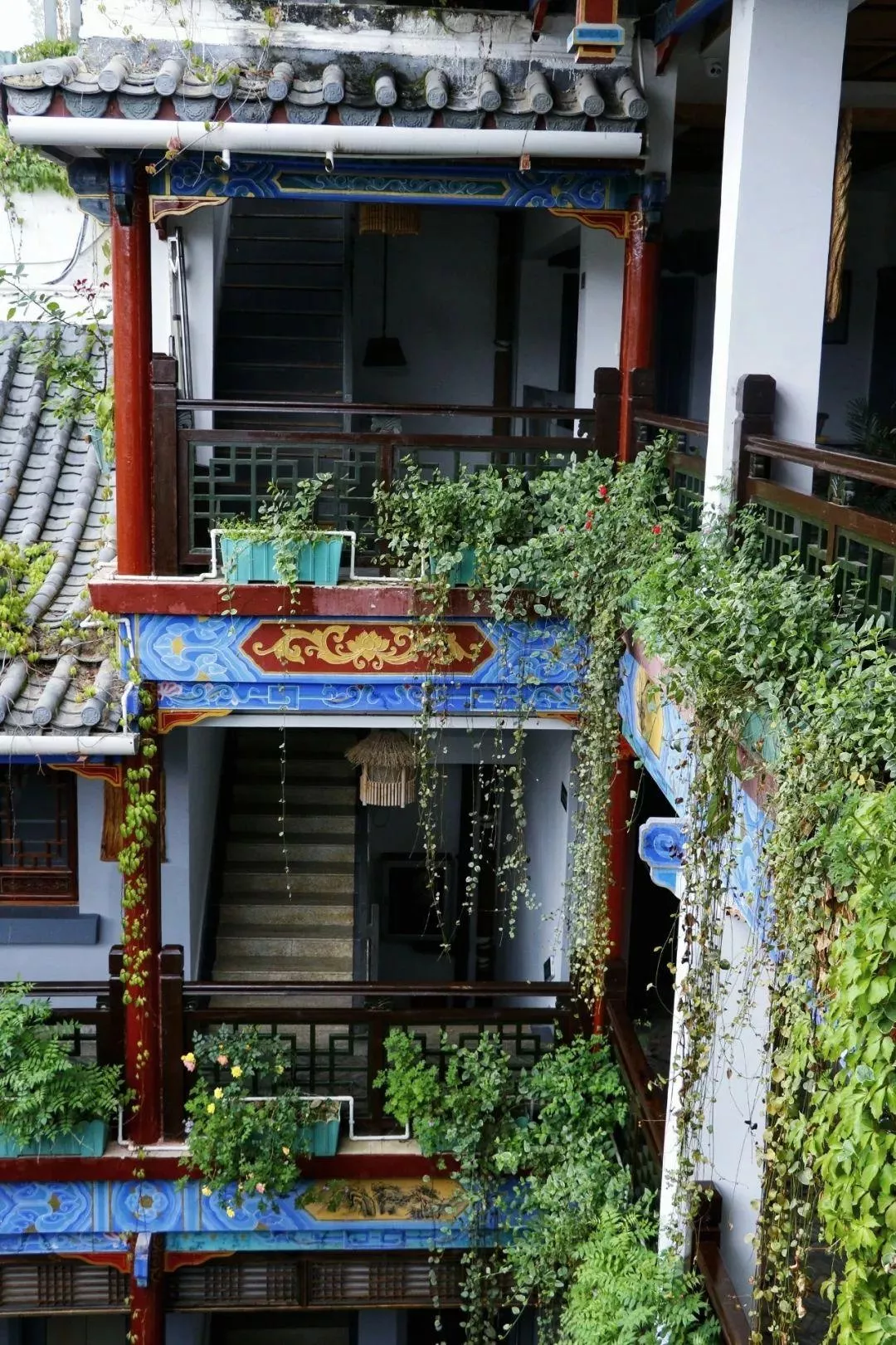 客棧位于古鎮(zhèn)的布依水鄉(xiāng),有著鮮明的布依風(fēng)格。客棧外觀是仿古建筑風(fēng)格,外墻上爬滿了綠植,郁郁蔥蔥。