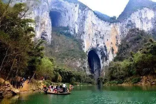 1、燕子洞:伏流入口第一廳,高116米寬25米的天然拱門之下,是270米長的湖。洞內棲息著數(shù)十萬只燕子,早晚在洞口翻飛,雄奇壯觀。