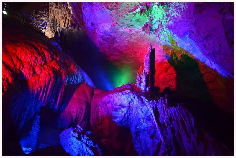 開陽(yáng)猴耳天坑位于貴陽(yáng)市開陽(yáng)縣。天坑坑口直徑300米,坑身280米,坑底最大直徑也是280米,由于形狀像猴耳,故名為“猴耳”天坑。天坑在地理地貌上為喀斯特漏斗,是地殼運(yùn)動(dòng)的產(chǎn)物,再加上上千萬(wàn)年的雨水溶蝕沖刷,地下水系又長(zhǎng)時(shí)間對(duì)巖層不斷侵蝕搬運(yùn),最終形成了巨大的地下穴洞?!昂锒碧炜釉贾脖槐Wo(hù)較為完好,多處溶洞暗河穿插其間,形成尋回曲折的通道,被當(dāng)?shù)厝朔Q之為“一線天”或“閃電門”的奇觀就于天坑中的大片竹林相連。這里一年四季氣候溫潤(rùn)如春、山花斗艷、百鳥爭(zhēng)鳴,又為這片圣地平添了一種安靜、祥和、自然的神奇色彩。