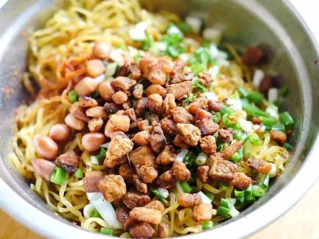 這家店在這個位置只開了三年,但是在淮河路開了7.8年,雖然貴陽有很多知名的脆哨燃面,但我個人口味而言覺得這是最好吃的一家。端上來要馬上拌來吃那股熱氣才能把豬油香發(fā)揮到極致,辣椒吃起來有一絲絲燒烤味,一定要吃到最后,里面剩的脆哨、花生、蔥花一起倒進嘴里,混合起來特別香,簡直就是精華中的精華