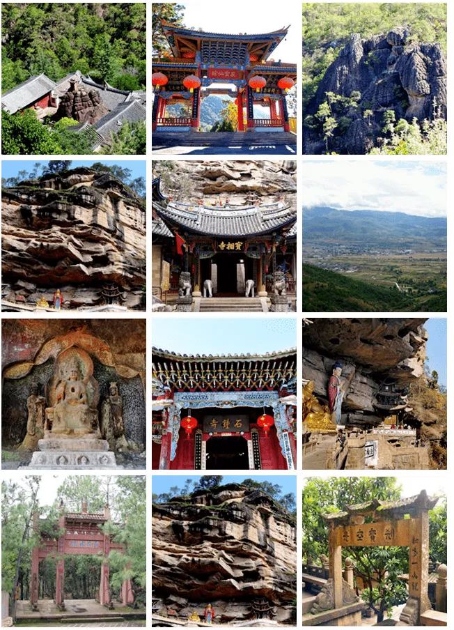 山中有建于元代的懸空寶相寺、明代的金頂寺和清代的海云居,歷史悠久,各具特色。始于南詔大理國時(shí)期的石寶山歌會(huì),歷千年而不哀,獨(dú)縣神韻風(fēng)彩,青年男女匯聚寶山,通宵達(dá)旦,弦歌如潮,被稱為西部的"情人節(jié)"。