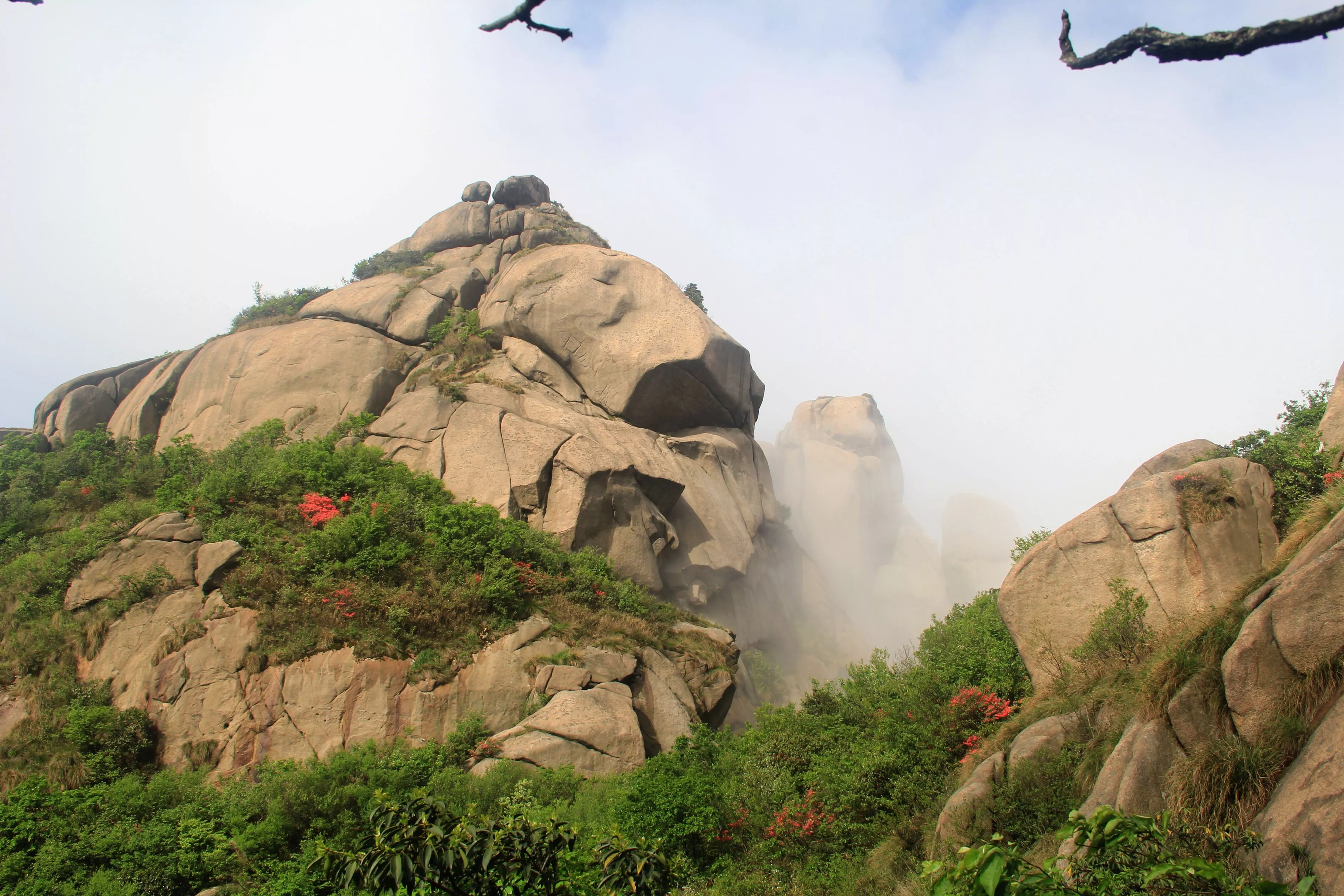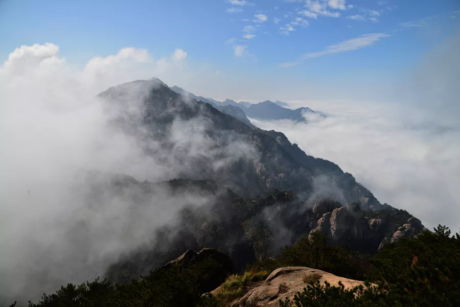 九華山的“怪石嶙峋”:九華山的山體以花崗巖石為主體。地質(zhì)變化和水流作用形成了山地錯(cuò)落、險(xiǎn)峰插云、怪石嵯峨、幽谷深邃的地貌景觀