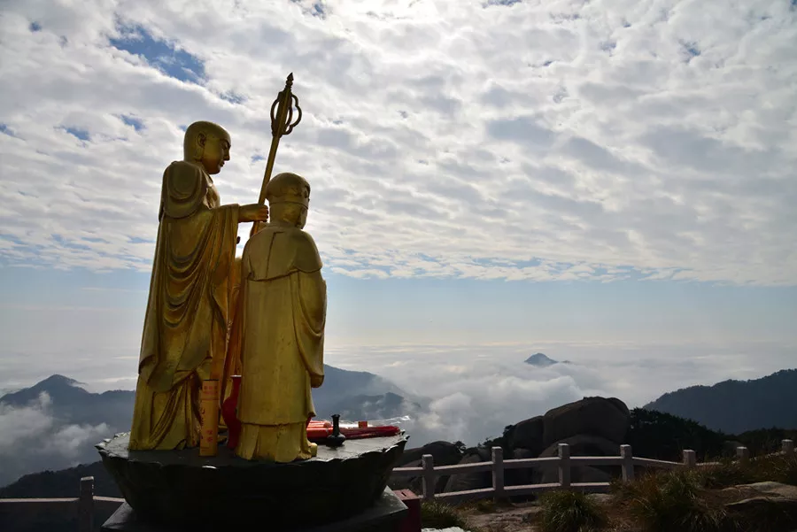 據(jù)《九華山志》等文獻(xiàn)記載。公元401年,也就是東晉隆安五年,天竺(古印度)僧人釋杯渡來到九華山,興建寺廟、修行布道,是有史記載的第一位上九華山的境外僧人;唐代古新羅國僧人金喬覺渡海來華,卓錫苦修,圓寂后,肉身不腐,被后人尊為地藏菩薩“應(yīng)化”,九華山遂被辟為地藏菩薩道場(chǎng)。現(xiàn)有佛教寺院99座,是重要的國際性佛教道場(chǎng)和著名的旅游勝地。