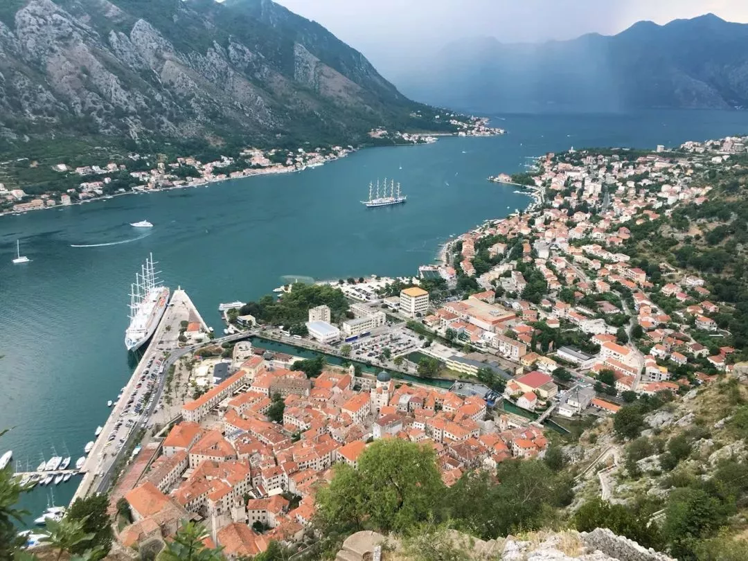 從大巴站出來(lái)按著谷歌地圖走五六分鐘就到了 科托爾 城墻邊,進(jìn)去就是 科托爾 老城城堡,要想俯瞰科托爾 市和 科托爾 灣就必須爬城堡上面的山,山不算高,二三十分鐘就可以爬到山頂,門(mén)票8歐,也不貴,我覺(jué)得非常值得,紅瓦白墻,景色非常漂亮,不輸 歐洲 主流旅游國(guó)家。