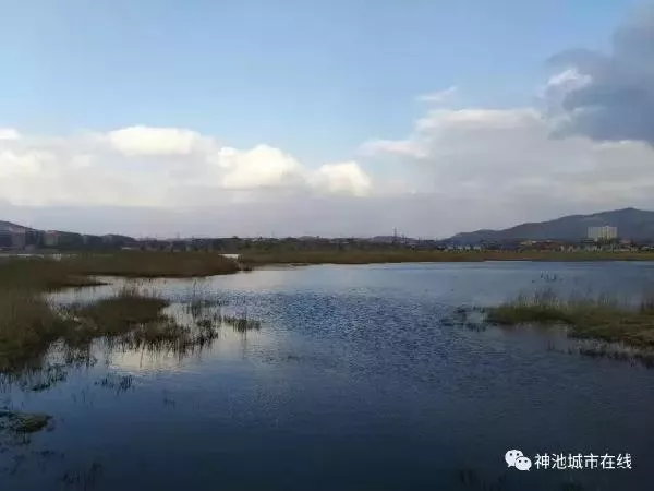 風呼呼地刮著,冷兮兮的,我裹緊了衣服,先登上山去,山上有石階,在高處有一亭,回頭眺望整個神池縣城,紅瓦青房,鱗次櫛比,沿東西排列綿延,也別有幾份小城韻味。在山下靠北面有一片濕地,密密的蘆葦蕩中分割有三大塊相連的湖泊,沿濕地的邊緣有一條環(huán)形的路,供人們步行游覽。我從山上抄小路下來,來到了濕地公園跟前。有一塊石頭上刻有“西海子”,這就是傳說中的天上瑤池人間神池——西海子湖了!據(jù)傳說這里的水,不論周邊是干旱還是雨澇,而西海子湖里的水卻是不增不減,怡然自在。