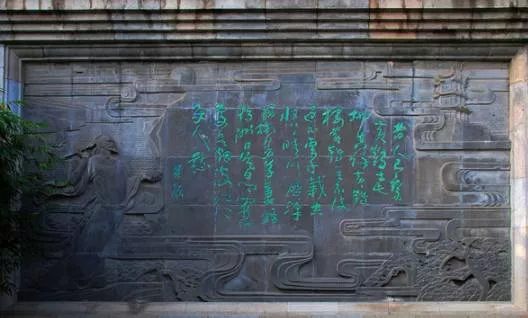 《崔顥題詩圖》浮雕 黃鶴樓公園自古就是文人墨客鐘情的地方。不知道有多少名人曾在此留下了作品。崔顥就是其中一位?!洞揞楊}詩圖》浮雕在黃鶴樓以東118米。位于主樓和南樓之間,是一座石照壁形式的浮雕。被稱為詩碑,又被稱為題詩圖。圖上雕繪著唐代詩人崔顥在云霞繚繞間,長袖飄逸、峨冠博帶、瀟灑挺拔、運筆賦詩的形象,圖的中央雕刻著他的千古名詩《黃鶴樓》。