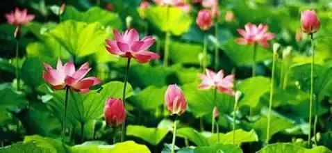 粉色的、白色的、含苞待放的、已經盛開的,在滿池蓮葉中星星點綴,驅散了這幾天的燥熱。
