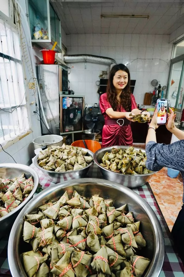 沒有吃過金鄉(xiāng)的阿婆香粽,你就不知道家鄉(xiāng)粽的好吃。阿婆的粽子全部用新鮮的大竹葉子包,有各種口味,看一下包的線就知道,蒼南人都喜歡。阿婆今年71歲,幾十年來就做一樣東西:粽子。她的粽子遠近馳名,沒有預定是買不到的,不過她365天都生產(chǎn),所以你有心來溫州到金鄉(xiāng)尋找,是可以吃到的。阿婆香粽,蒼南最好吃的粽子,也是非遺美食。你若想吃,可來金鄉(xiāng)找這位阿婆,她是金鄉(xiāng)的一塊金字招牌。