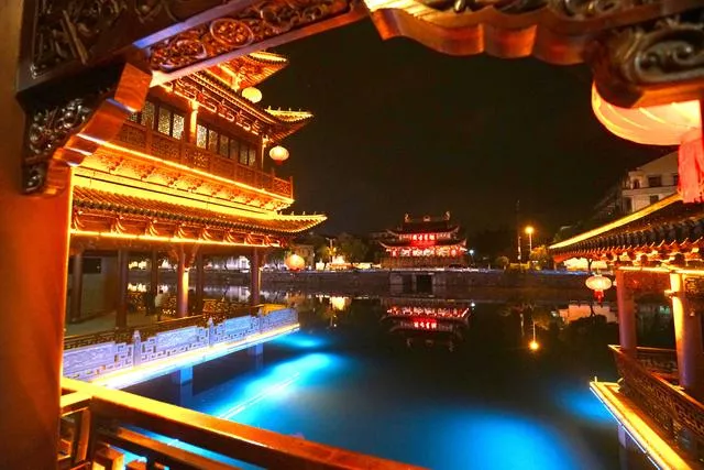 金鄉(xiāng)的夜很美,尤其是這一段。晚飯后,撐著傘,沿著河邊行走,燈光搖曳,心情不錯。這是我國保存最完整的護城河:溫州蒼南金鄉(xiāng)護城河。蒼南金鄉(xiāng)是一個非常特別的地方,以前倭寇很多,所以古代設金鄉(xiāng)衛(wèi),衛(wèi)相當于現(xiàn)在的省部級,可見當年金鄉(xiāng)的重要性,所以設護城河,以前是為了防御,現(xiàn)在的護城河,成了旅游觀光景點,護城河上有很多亭樓……