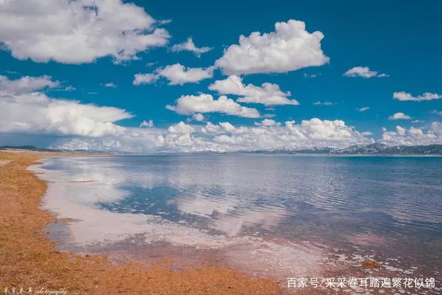 橙色的灘涂、湛藍的湖水交織融合,對比鮮明的色彩構(gòu)成最為入心的生動。