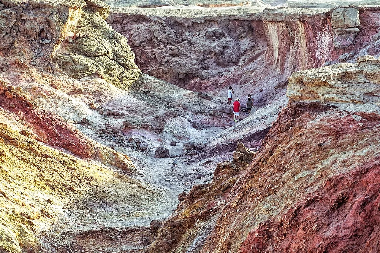 向?qū)莵碜?a href='/bajisitan/' target=_blank>巴基斯坦的Haleem,他會帶領(lǐng)大家徒步穿越山脊中的峽谷。小島中部的這條裂縫,一眼望去,不著邊際,除了火紅色,更是匯集了所有代表荒蕪的顏色?,F(xiàn)在,可以感嘆一下滄海桑田了。
