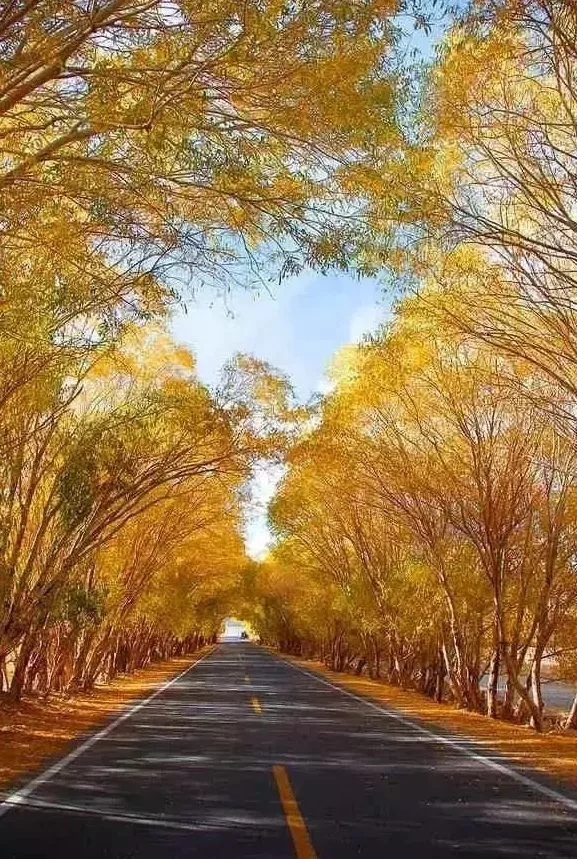 綠色的胡楊道路兩邊鋪展,越往深處,胡楊的樹干越粗,胡楊越密。古爾圖鎮(zhèn)黨委委員王支柱介紹:“到了秋天,胡楊的葉子就變成了金黃、鵝黃、橘黃……特別漂亮!”