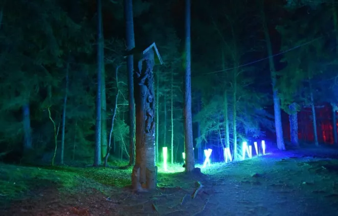 今年Neringa是第二次參展克萊佩達燈節(jié),主題再次涉及女巫山的木制雕塑— 女巫,魔鬼和立陶宛民間傳說英雄。在女巫山展覽行程末,布置有發(fā)光的駝鹿和喜慶的冷杉,受到了眾多度假村居民和客人的青睞,節(jié)日組織者也會裝扮成魔鬼和巫婆,和游客們一起享受節(jié)日氛圍。