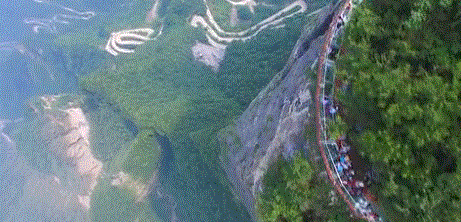 當(dāng)然提起天門山,它還有一個(gè)——“天門山懸崖玻璃棧道”,全長約110米,橋?qū)?.5米、落差188米、是目前省內(nèi)在建的玻璃棧道中落差最大的懸崖棧道。