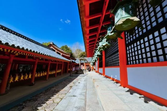 春日大社雖歷史悠久,但神社內(nèi)至今完整保留著本殿、桂昌殿、幣殿、舞殿、酒殿、竃殿、寶庫、著到殿等古老建筑;其中本殿由四個并立的社殿組成,在朱紅色的回廊以及園內(nèi)郁郁蔥蔥的參天古木的陪襯下顯得更加氣勢恢弘,也是神社內(nèi)最令人矚目的風(fēng)景線。除了古老的建筑,春日大社內(nèi)還保留著3000座石燈籠、吊燈籠以及3000件文物,其中520件已經(jīng)被指定為國寶。神社每年3月13日舉行例祭,很多日本民眾都會到此參拜。