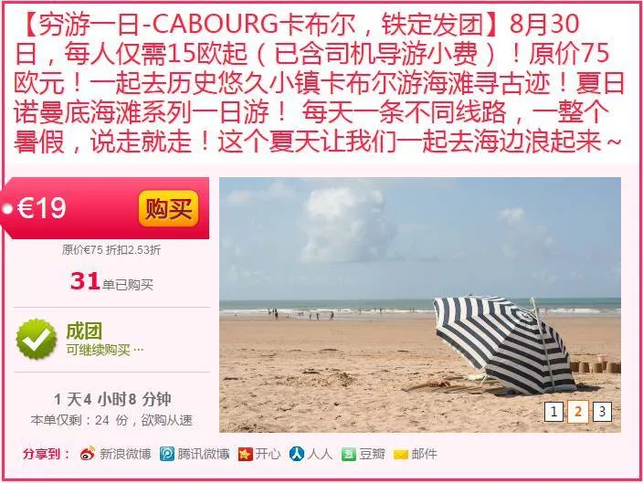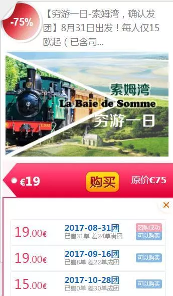 實時歐團價:每人僅19歐起?。ㄗ詈?2單或?qū)q為25歐哦!)已含司機導游小費,原價75歐!