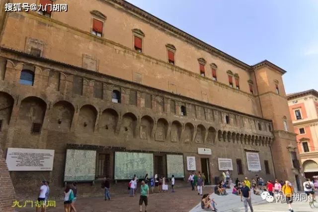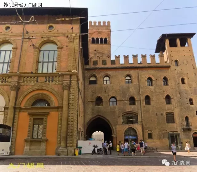 廣場上正對教堂的波德斯塔宮(Palazzo del Podestà),建于1200年前后,Podestà有總督的意思,也即神圣羅馬帝國皇帝派駐在博洛尼亞的行政長官。