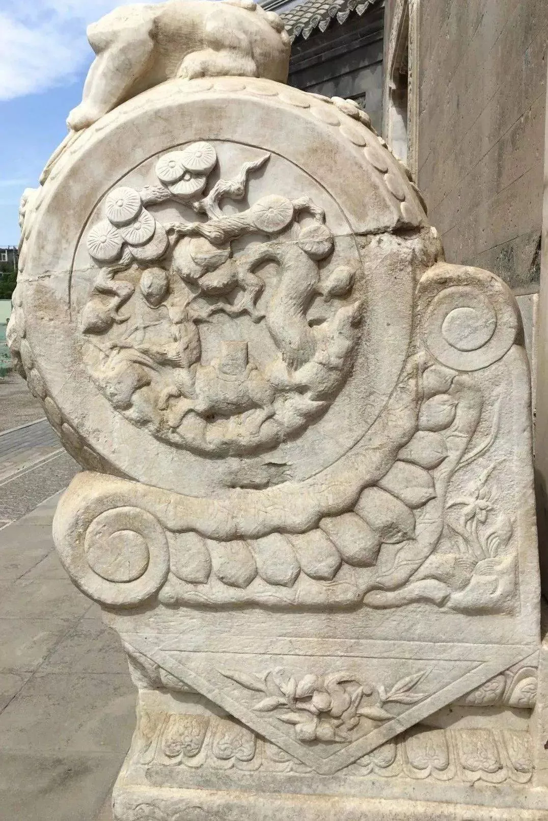 淮軍公所“三雕”之石雕淮軍公所的石雕,主要設(shè)置在公所建筑的中券門、抱鼓石、柱頂石、石碑及碑座等承重強(qiáng)度較高的構(gòu)件上。雕刻技法采用浮雕、透雕、立體雕等,以漢白玉石和青石為主要材料。其中,漢白玉石主要應(yīng)用于迎賓院正門屋面、抱鼓石、門框以及院內(nèi)李鴻章祭文石碑、碑座,昭忠祠正門東西次間盲窗窗框;青石主要應(yīng)用于戲樓柱頂石、昭忠祠前院連廊墻內(nèi)碑刻以及拴馬石等構(gòu)件。01漢白玉迎
