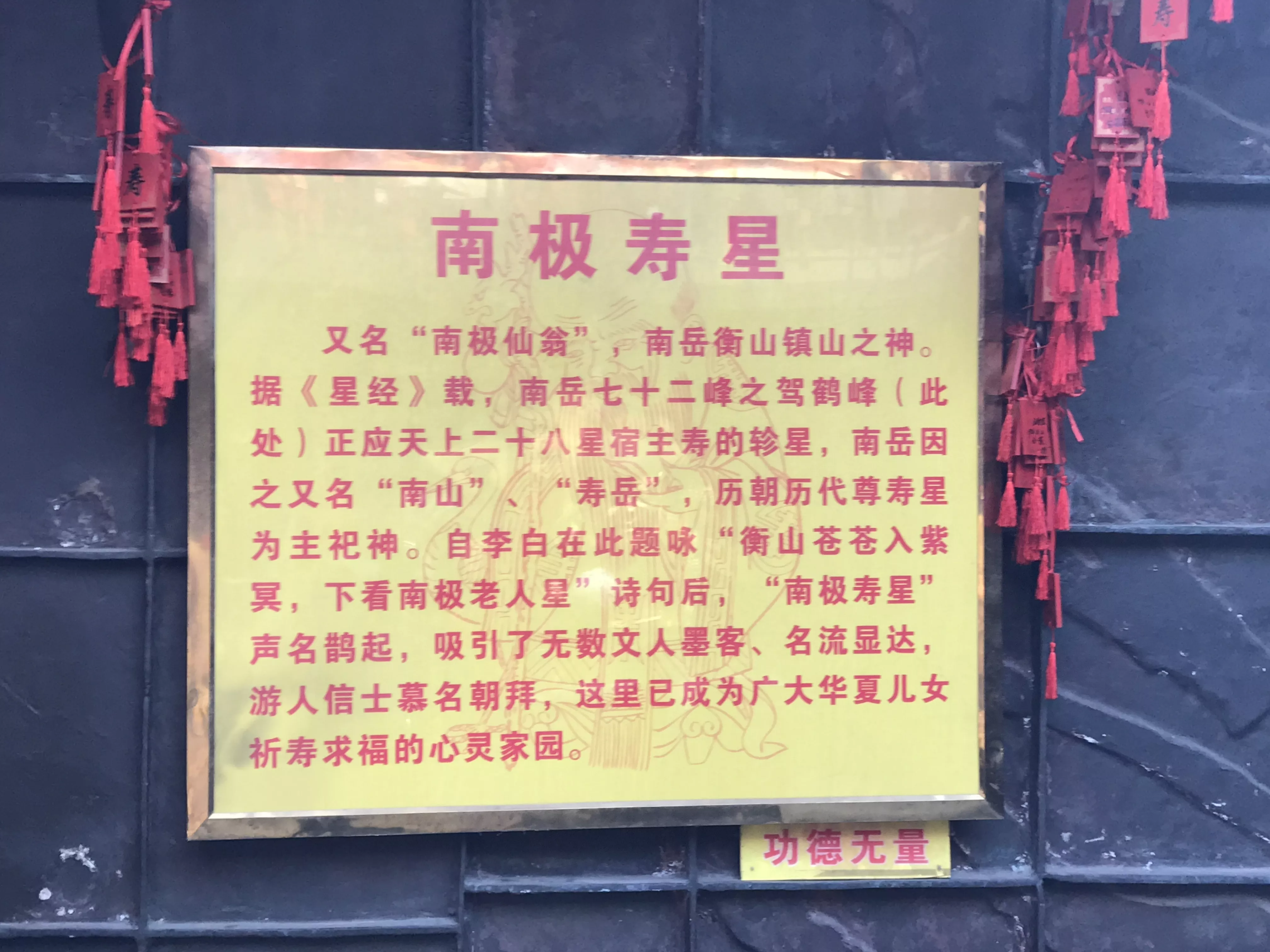 看到到了大鼎的內(nèi)部構(gòu)造,還有一些描述,才知道這里最要供奉“南極壽星”,又名“南極仙翁”,是南岳衡山的鎮(zhèn)山之神,想起在我們成長(zhǎng)過(guò)程中,一些神話傳說(shuō)多少都有聽過(guò),“南極仙翁”,一時(shí)間,令人特別神往!