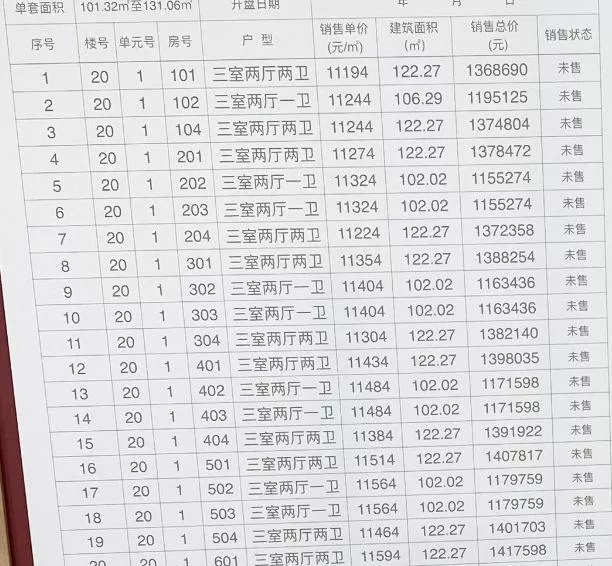 具體價(jià)格表可以前往售樓處查看