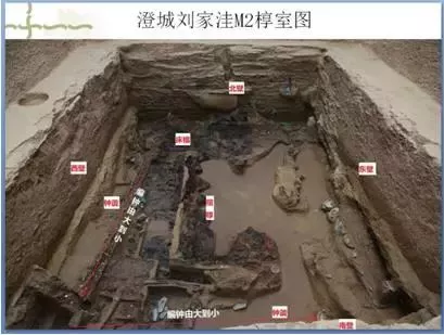 劉家洼M2出土編磬一架,編甬鐘兩架,屬于可以擺成三面的軒懸之制。但從M2的槨室圖來(lái)看并非如此,編鐘和編磬并非擺列三面。這就涉及如何解讀考古材料的問(wèn)題了?!秾?duì)澄城劉家洼墓地出土樂(lè)器的幾點(diǎn)初步認(rèn)識(shí)》一文經(jīng)過(guò)詳細(xì)考證,認(rèn)為劉家洼M2確為軒懸之制,M2墓主當(dāng)為一代芮國(guó)國(guó)君,軒懸之制與墓主身份相符,故劉家洼M2的樂(lè)懸當(dāng)為目前所見(jiàn)最早的軒懸(或曲懸)之實(shí)例。
