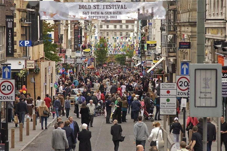 走遍利物浦的大街小巷,當(dāng)屬Bold Street最具獨(dú)特的吸引力。利物浦的Bold Street是利物浦的標(biāo)志性地標(biāo)以及著名景點(diǎn)之一,它以眾多各有特色的咖啡館和位于街道上端的圣盧克教堂 (St Luke’s Church) 而聞名。著名的旅游雜志 ——《孤獨(dú)星球》還將Bold Street評(píng)為全英最佳購(gòu)物街之一。每當(dāng)朋友問起“來利物浦該該去哪逛逛好呢“,小編我都會(huì)回答“來Bold Street逛逛吧,你總能在這里發(fā)現(xiàn)它與利物浦其他地方不一樣的魅力”。在詳細(xì)介紹Bold Street的商業(yè)娛樂功能之前,小編將帶你回到過去,看看過去Bold Street有趣的歷史故事與變化。