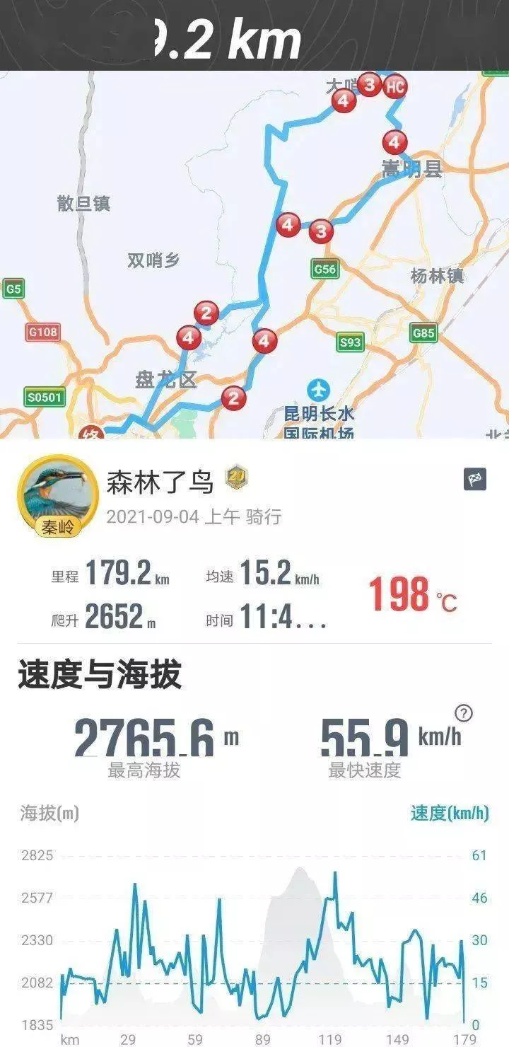 轉(zhuǎn)下水泥路,騎全程的要往回趕了,從這里回到昆明城,他們還有遙遠(yuǎn)的80公里!加上午的70公里,同行的30公里全上坡,今天總的公里數(shù)將達(dá)到180公里,而累計(jì)爬升將達(dá)到驚人的2650米!