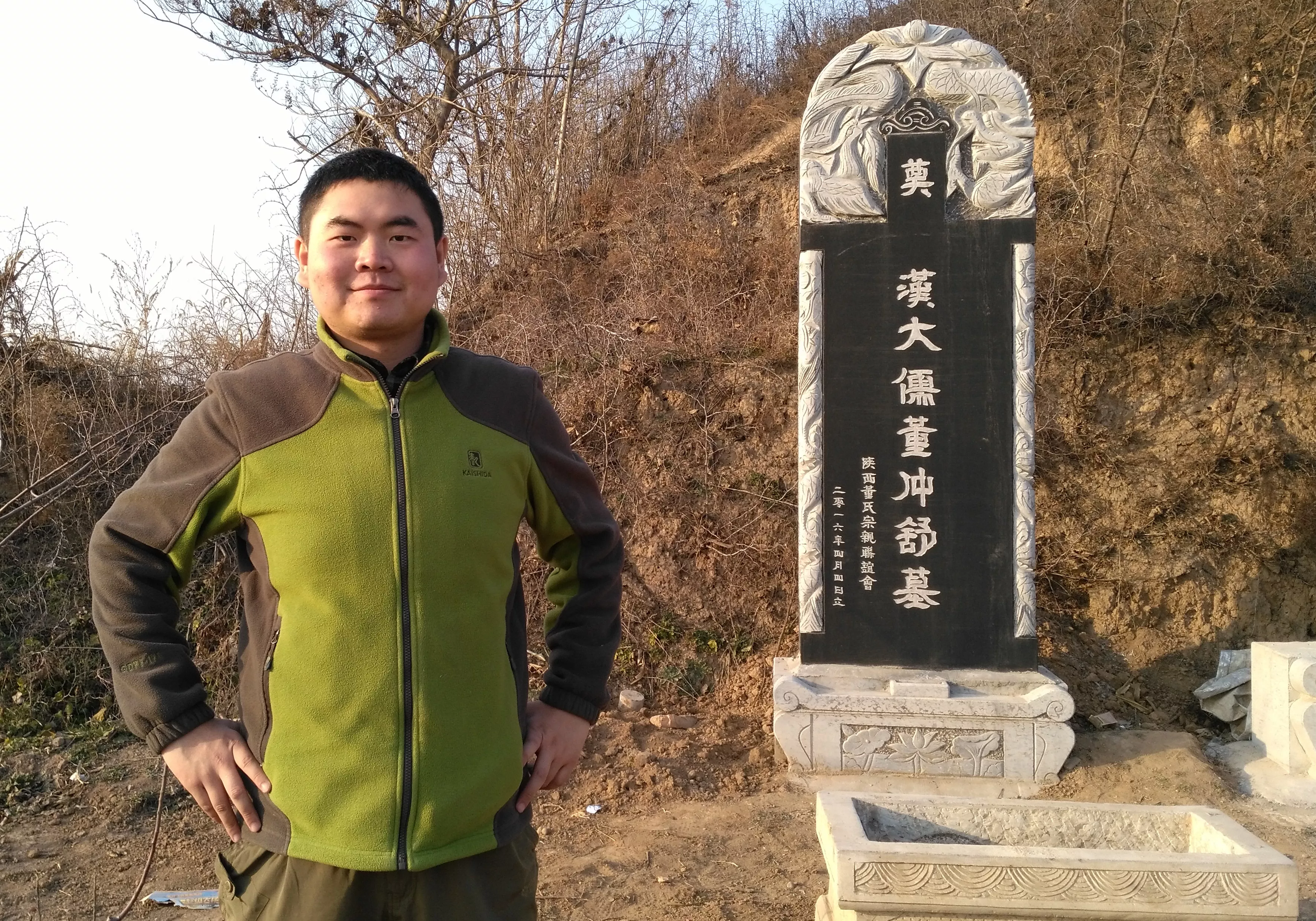 2月12日,我和朋友去衛(wèi)青墓錄制節(jié)目。臨走之前,我問了一下路過的大爺,西北側(cè)不遠(yuǎn)處的那座“策?!?,到底埋得是誰呀?他告訴我:“大家都說是董仲舒墓,但可能性不大。前一段時間,董氏家族的后裔還在墓前立了一塊碑呢!”