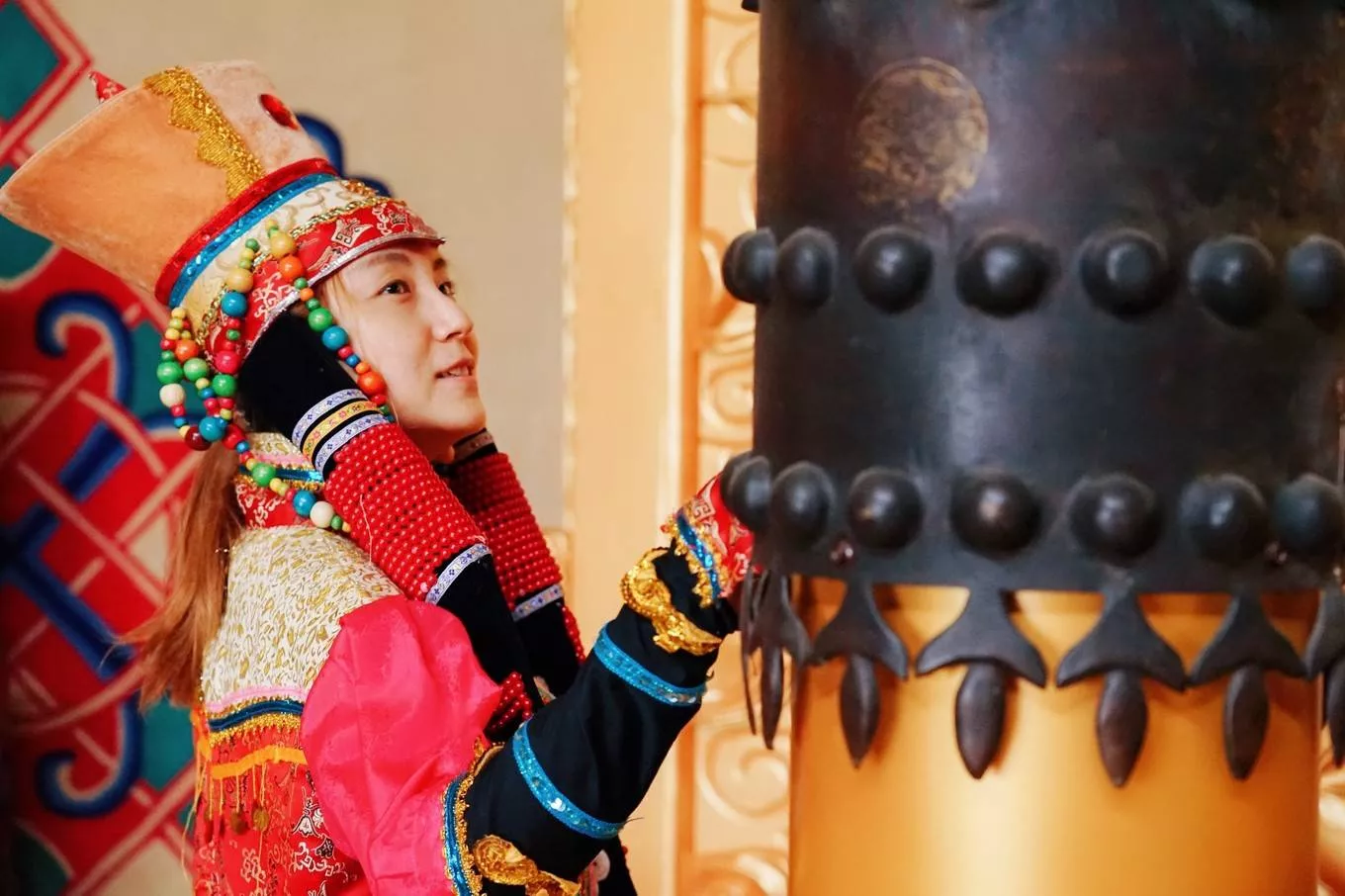 具有強(qiáng)烈宗教色彩并象征神在其位的敖包和集佛教道教、薩滿教于一體的祭天臺(tái)等建筑共同構(gòu)成景區(qū)中軸線。蒙古包內(nèi),還在演繹當(dāng)年的故事。
