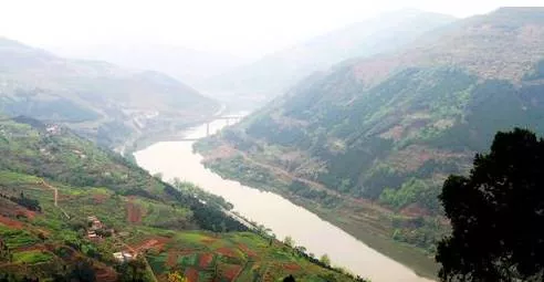 沿山而下,穿江而過,又順左岸的山勢