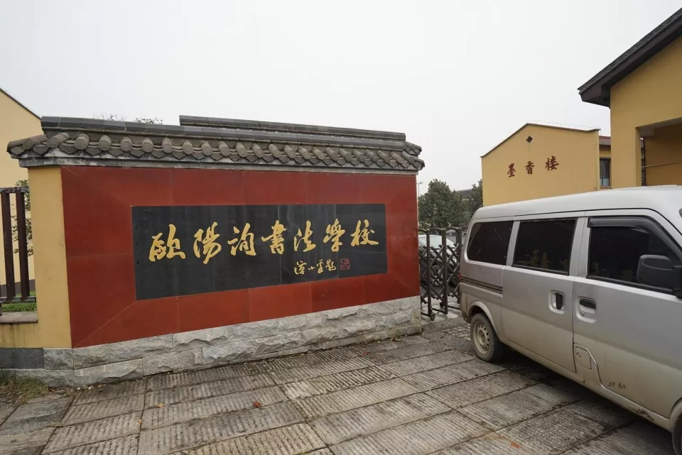 文化園內(nèi)共有五道門,書法小鎮(zhèn)的東門忠勇門外,還有書香門、厚德門、尚孝門和集賢門,每個(gè)門都有它的來歷。穿過書香門,忽然聞到朗朗讀書聲,原來這里還有一所“歐陽詢書法學(xué)?!?。導(dǎo)游介紹,這所學(xué)校即“書堂山中學(xué)”,是一所以書法教學(xué)為特色的全日制中學(xué),也培養(yǎng)走出過不少書法人才。
