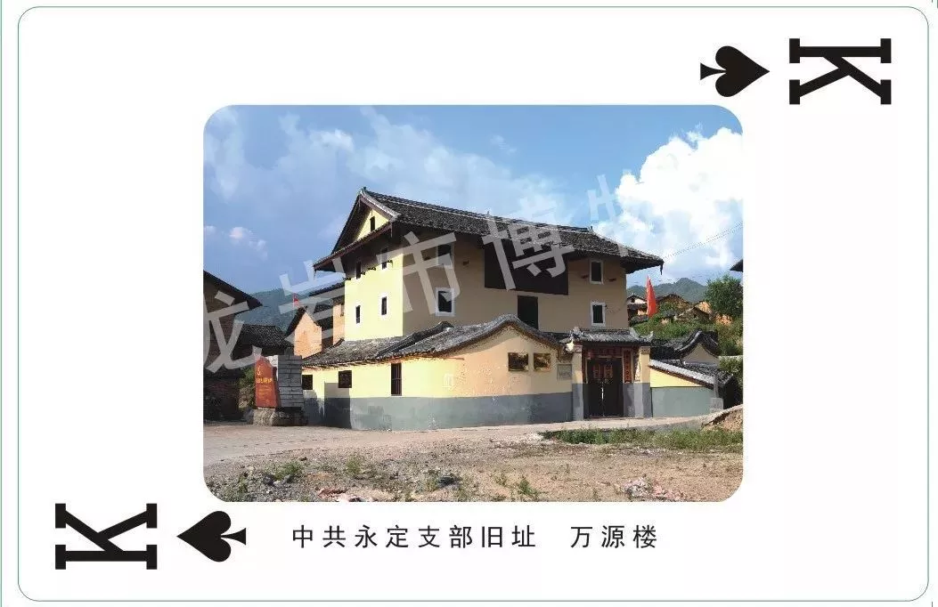 東南西北中,黨政軍民學(xué),黨是領(lǐng)導(dǎo)一切的。歷史已經(jīng)證明并將繼續(xù)證明,中國(guó)共產(chǎn)黨是中國(guó)革命、建設(shè)和發(fā)展的堅(jiān)強(qiáng)而有力的領(lǐng)導(dǎo)核心。中共永定支部是福建省第一個(gè)農(nóng)村黨支部,中共閩西特委、中共閩粵贛臨時(shí)省委、中共福建省委是不同時(shí)期分別在閩西蘇區(qū)設(shè)立并發(fā)揮了重要作用的黨組織。選擇這4類黨組織的革命舊址,作為“K”(國(guó)王King)牌,順理成章。