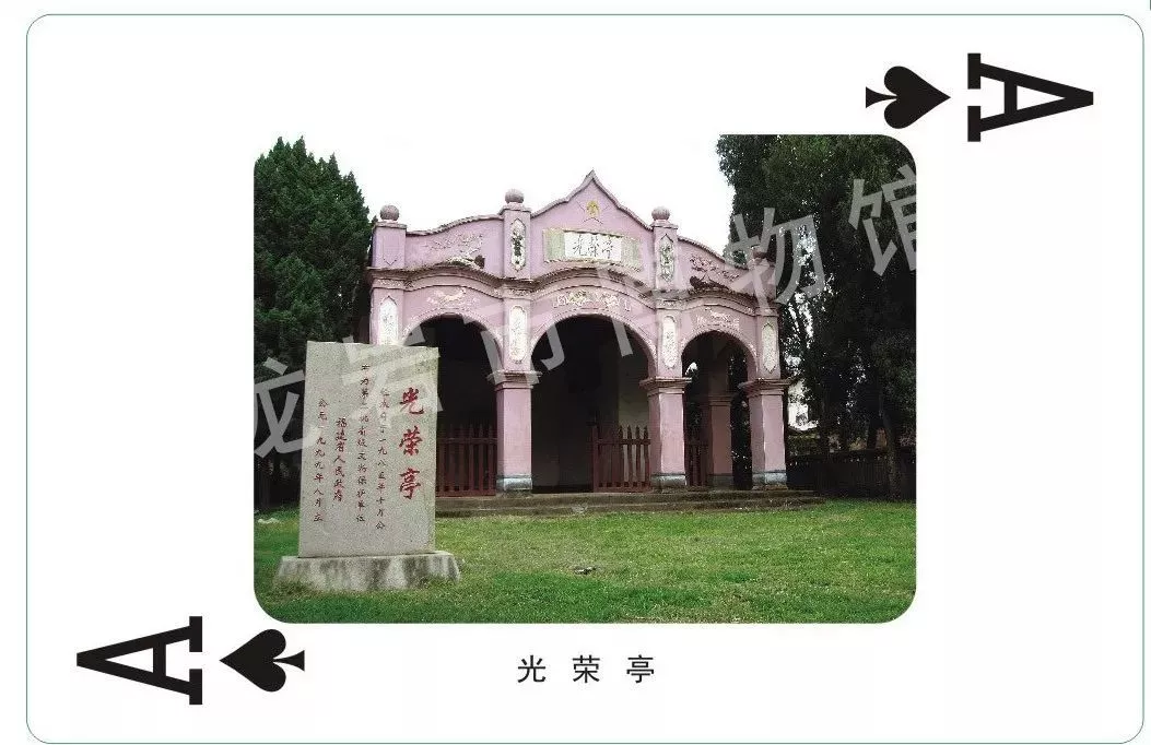 撲克是流行全世界的一種娛樂(lè)性強(qiáng)的紙質(zhì)工具,形成了風(fēng)靡全球的撲克文化。撲克牌一共14類54張,每一類撲克牌分為????4種花色,?為尊。龍巖市博物館根據(jù)革命舊址的意義、屬性、歷史作用,將閩西最經(jīng)典、最具代表性的革命舊址分別針對(duì)花色、點(diǎn)數(shù)對(duì)號(hào)入座,具有極深的文化寓意。針對(duì)????4種花色的大小排序,設(shè)計(jì)者也是絞盡腦汁,頗具匠心。