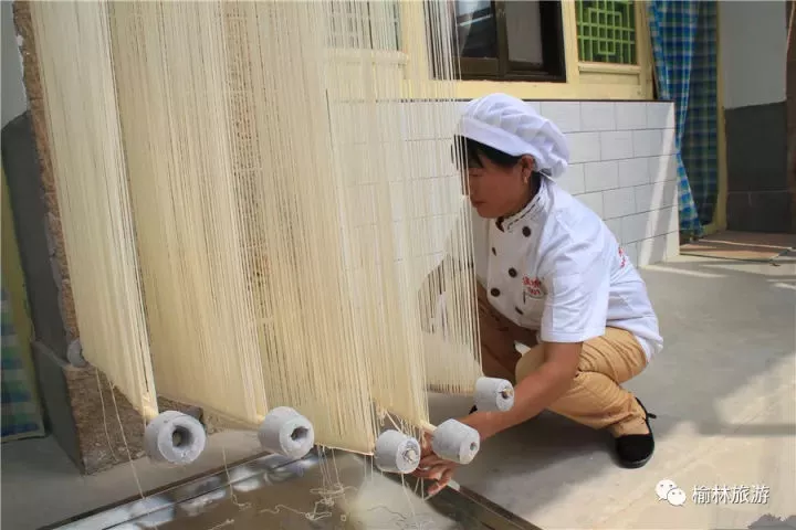 吳堡縣張家山手工空心掛面制作已有上千年歷史,靠著父輩們代代口耳相傳,保留了最為傳統(tǒng)的制作工藝。手工空心掛面因其選料考究,制作精細(xì),故有“料珍味饈,每獻(xiàn)上以補(bǔ)”之稱譽(yù)。食用時(shí)配以陜北羔羊肉、雞湯、肉絲湯、金針湯等湯料,入口綿軟,回味悠長(zhǎng),堪稱陜北民間一大美食,也是接待貴賓、走親訪友必不可少的禮品之一。