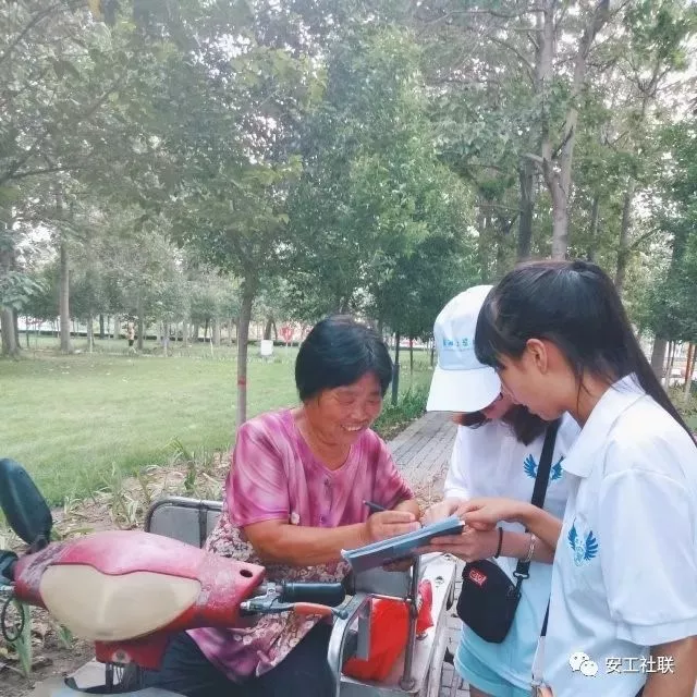 圖為志愿者對當(dāng)?shù)鼐用襁M行調(diào)查問卷