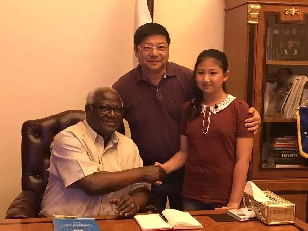 經濟顧問姚汝洮、沈陽女孩姚宏合美與塞拉利昂總統(tǒng)科羅馬在一起
