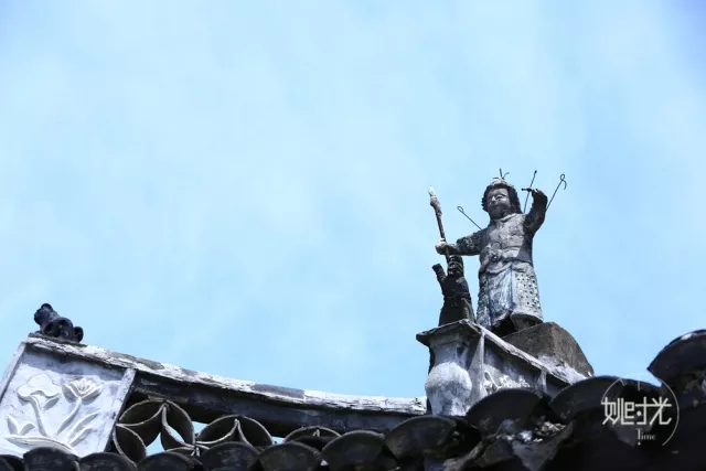 越國公廟的屋脊上,我們還看到了一對形象鮮明造型生動的塑像,他們是誰?站立在屋脊的角上,是為了守護(hù)廟宇還是有其他意義?我們仰視天空的時候,能夠看到他們同樣目視遠(yuǎn)方……,或許他們?nèi)栽跓o言的述說著一些故事,只是我們的耳朵只能聽到有聲的言語,不能領(lǐng)會他們的心意罷了。