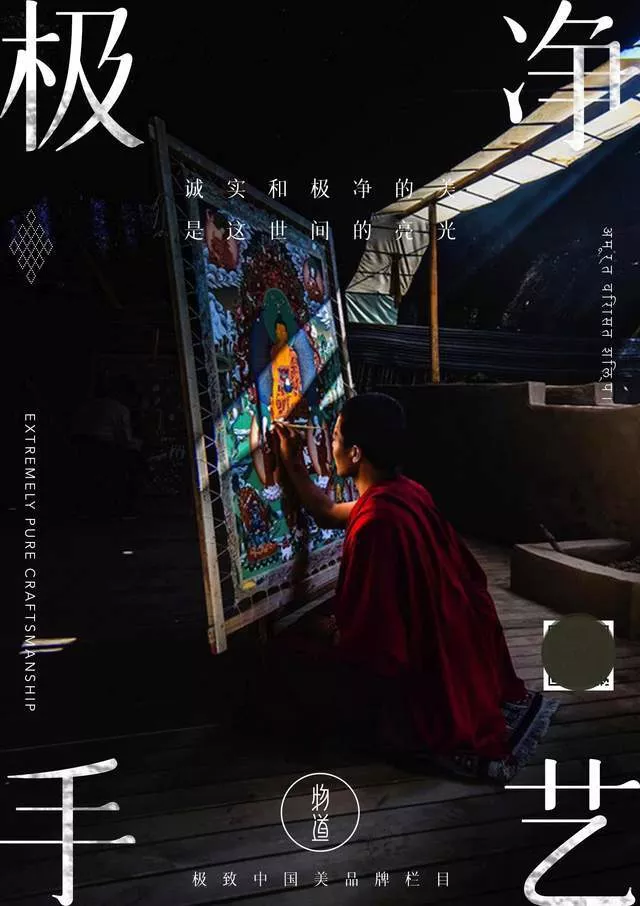 物道君語(yǔ): 記得第一次在書上見(jiàn)到唐卡時(shí),只覺(jué)得俗氣,那是一幅用化學(xué)顏料量產(chǎn)噴繪的《無(wú)量壽佛》像,中央的佛陀通體紅色,顏色很鮮艷,明度純度都很高,其他地方紅的金的青的,令人眼花繚亂,像是一幅沒(méi)有靈魂的布。 后來(lái),我來(lái)到了熱貢唐卡的發(fā)源地——吾屯,我才發(fā)現(xiàn)一幅唐卡的美妙,當(dāng)你靠近它,從近處細(xì)細(xì)看,你會(huì)發(fā)現(xiàn)佛祖的神態(tài)靈韻,菩薩的姿態(tài)各異,背景的云煙草木,細(xì)節(jié)十分豐富而細(xì)致。畫師告訴我,一幅這樣的作品,慢則十天半月,長(zhǎng)則三四年。